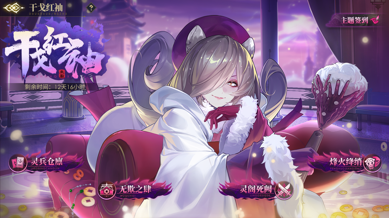 达成活动开启时间及条件后,龙子大人可以通过游戏主界面左下角的「干戈红袖」活动窗口进入活动主界面。