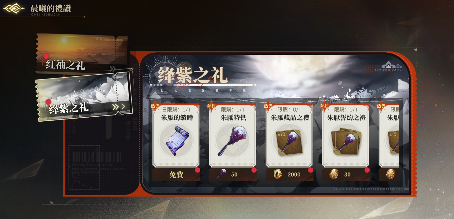 「碎片-绛紫浮梦」*50:可兑换藏品「绛紫浮梦」*1
