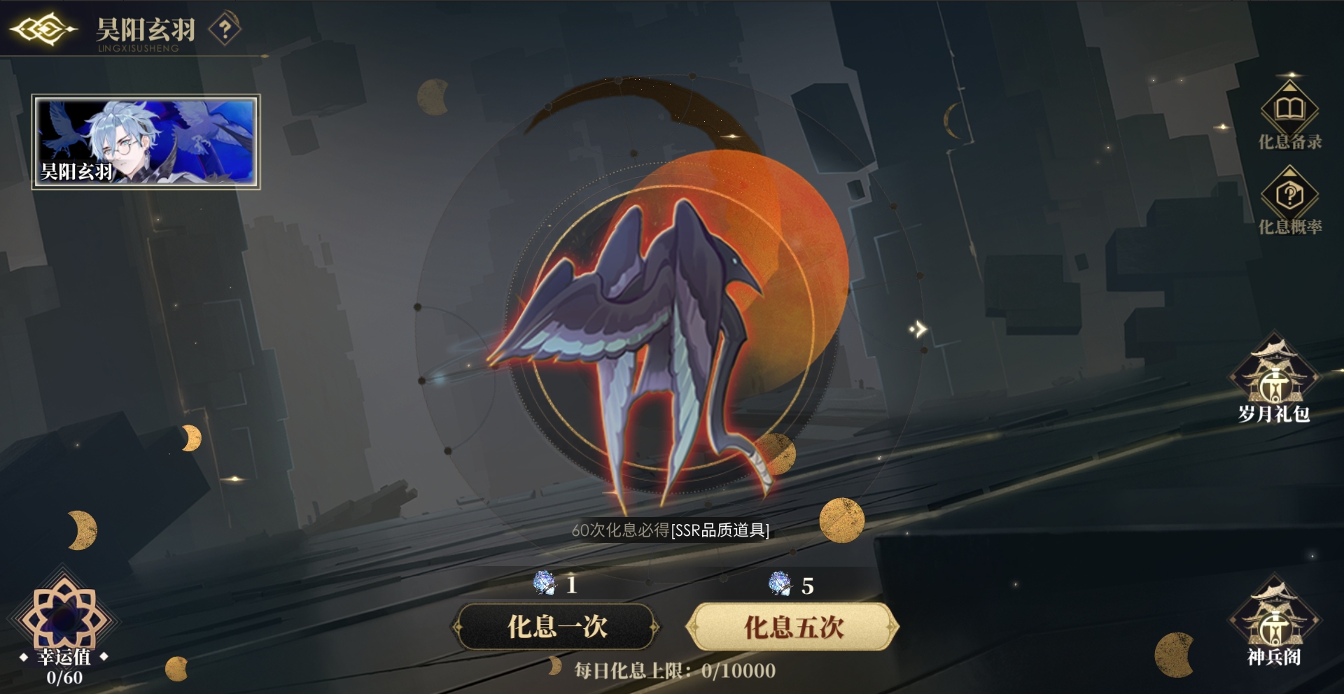 通过「偃兵附形」入口进入「昊阳玄羽」活动,可概率获得「金乌·陆景偃兵-昊阳玄羽」、「专属偃兵自选箱(6选1)」和「SSR级通用偃兵自选箱(7选1)」