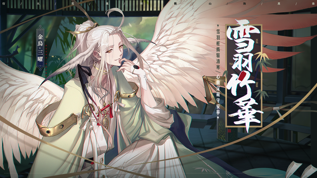 限时售卖期间,龙子大人可通过「神相千面」活动获得金乌·三曜「雪羽竹华」千面。